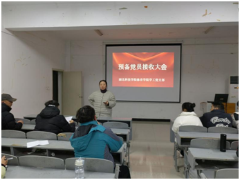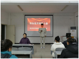 会议严格按照党组织接收预备党员各项程序进行。首先,支部组织委员邓昶怡清点完到会人数之后,发展对象逐一向支部大会汇报自身对党的认识、入党动机和个人情况等,表达自己对中国共产党的深刻认识和坚定的入党信念。随后,支部书记盛伊、支部党员谢自豪作为入党介绍人分别向支部大会介绍发展对象在考察培养期间的综合表现,认为五位同志能经常向党组织汇报思想、工作和学习情况,对党忠诚老实,能积极开展批评与自我批评,乐于助人,遵纪守法,较好地发挥了带头和带动作用,并对其能否入党表明意见。支部书记盛伊代表支委会报告发展对象审查情况,经政审,发展对象本人及家庭主要成员和主要社会关系政历清白,无重大政治、历史问题。随后,经支部大会正式党员无记名投票表决,同意接收刘雨怡等5位同志为中共预备党员。