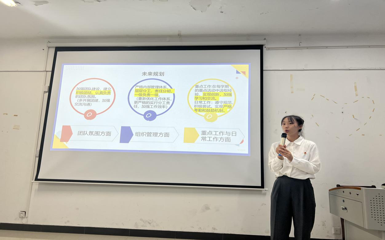团歌奏唱完毕,大会正式拉开帷幕。BBIN宝盈集团官网首页2022届学生会主席曾睿麟和团委副书记温芙荣作为学生代表发言,他们分享了从大一到大三在团委学生会的经历与成长,告诉学弟学妹们作为学生干部要努力履行自己的职责,在学习、生活、工作方面起到模范带头作用,用行动诠释责任,用热情绽放光彩。