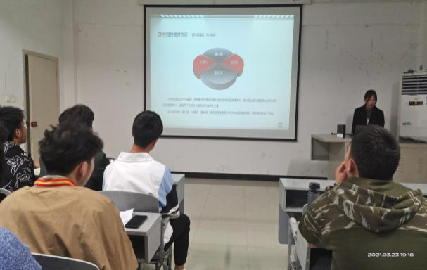 活动开始,主持人李千贺同学向大家播放了由咸宁市司法局提供的关于“非法校园贷”案例视频 ,介绍了非法贷款平台工作人员通过低门槛、低利率诱骗受害者进行校园借贷,当工作人员上门催收后受害者发现已形成高额违约金并经历了“套路贷”、暴力催收和非法拘禁等情形。视频情节紧凑,极大地吸引了同学们的兴趣。随后,主持人罗馨雅进行了非法校园贷有关知识宣讲,从非法校园贷的起源出发,围绕非法校园贷种类、危害进行了详细讲解,帮助学生认清披着“低息”、“便捷”“快速”伪装的非法校园贷款,使学生认识到非法校园贷的危害,引导学生树立正确、理性的消费观念。