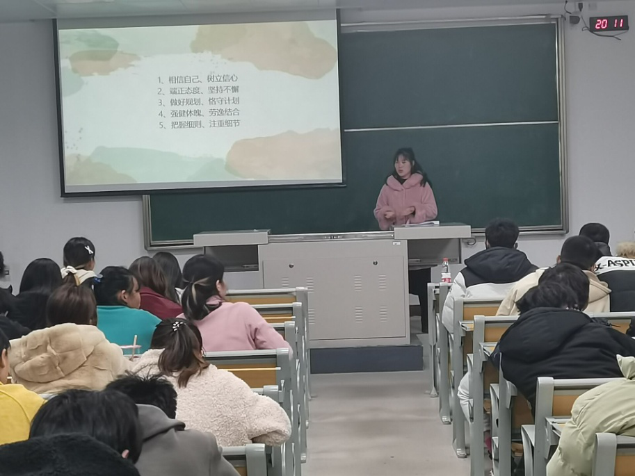 学风是治学、读书、做人的风气,是一所大学的灵魂和气质,也是一个班级的立班之本。优良学风是激励学生奋发向上、努力成才的无形而强大的精神力量。本次班会根据21级、20级学生成长规律,分别侧重大学生生涯规划和英语4、6级,考研备战经验分享两个方向,通过学长学姐们的学习生涯经验,帮助同学们拓宽学习发展视野,自我激励,明确个人学习成长方向,构建良好班风、学风。