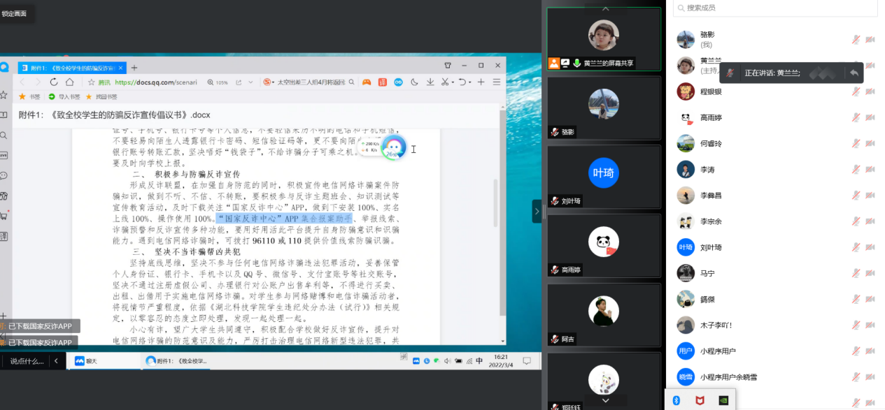 活动从介绍金融安全相关知识出发,宣传讲解新型电信网络诈骗相关知识以及非法“校园贷”、“套路贷”等非法集资活动的内容和危害,利用相关新闻报道、视频等展示了疫情之下新型网络诈骗、网络安全等案例,理论和案例分析相结合,多维度的使同学们对于非法校园贷的危害以及被平台逼迫偿还高额违约金、滞纳金等危险结果拥有初步了解,提高了大家对于非法校园贷、新型电信诈骗危害的认识。生动形象的介绍了常见的非法校园贷、电信诈骗等陷阱及如何防范的攻略,活动最后各班积极组织学生线上承诺接龙等活动。