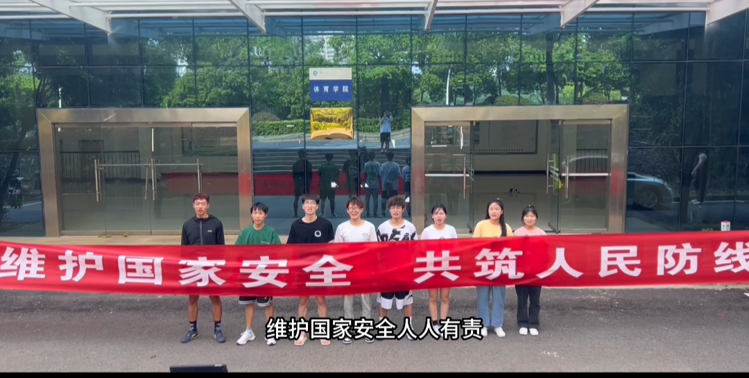 活动最后,来自2022体育学的王嵛同学发言铿锵有力,强调国家安全与每个人息息相关。全体参与同学共同发出倡议,在横幅前拍照留念,倡导维护国家安全,共筑人民防线。