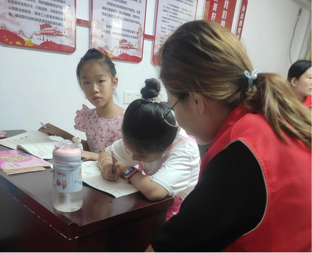 团队指导老师盛伊和志愿者们并肩前行,她告诉志愿者们要秉承着“爱心、耐心、责任心”服务社区,便利居民,为创造和谐文明的城市贡献青春力量。志愿者们以爱心为泥土,用陪伴作养分,让社区的孩子们假期快乐学习、精彩绽放;用奉献家园的精神,宣讲文明和安全知识,打造干净向上的社区环境。