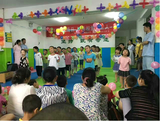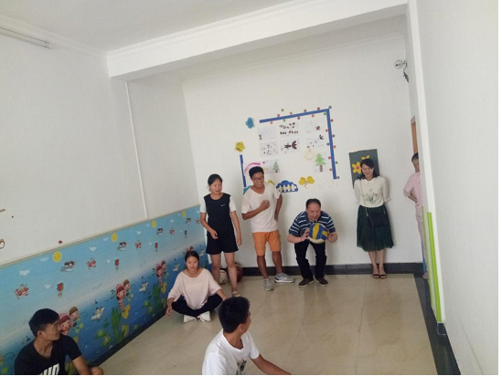随后,总支副书记练松老师与辅导员张晔老师参观了由我院志愿者们提前在咸宁市七彩梦康复中心布置的教室,并在活动室内与特殊儿童们进行亲切互动。康复中心为我院志愿者们准备了两个活动室,由我们的学生来为特殊儿童进行互动游戏,一个活动室是教学健美操,一个活动室是传接球游戏。在志愿者们精心准备、耐心引导下,康复中心的孩子们模仿动作、很快地与志愿者们进行互动,脸上也绽放出灿烂的笑容。