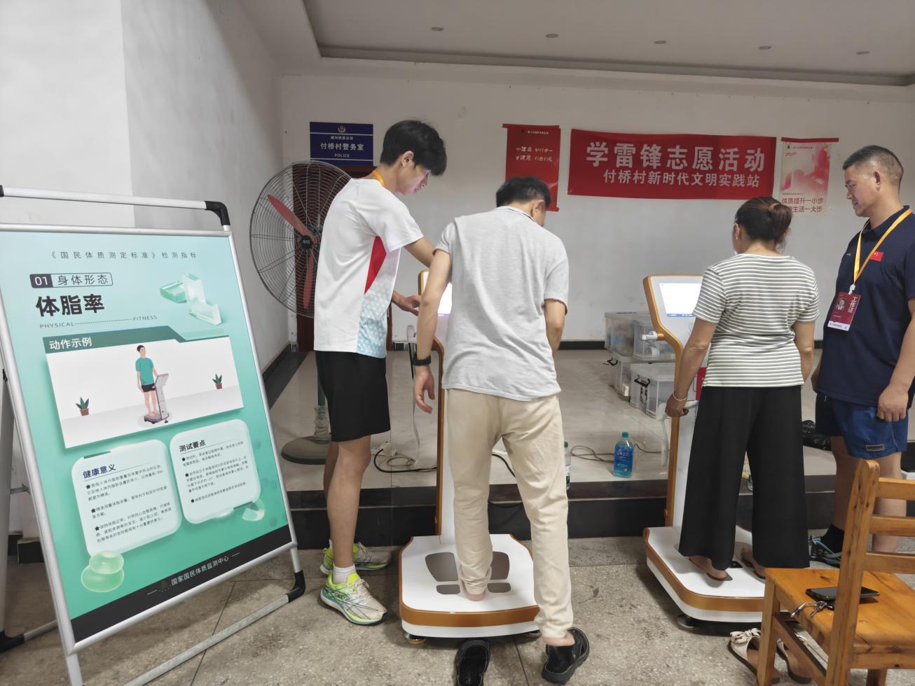图为志愿者引导村民测试体脂率。丁星供图