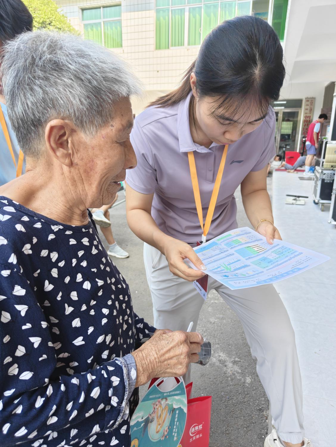 一位65岁的付桥村村民王大爷测试结束后,拿着志愿者写的建议单高兴地说:“以前总觉得自己身体还行,没想到今天测了才知道有这么多要注意的地方。这些娃娃们不仅服务好,还讲得特别清楚,真是太感谢他们了!”朝阳社区的李阿姨也笑着补充道:“现在生活好了,就想身体健健康康的,他们来给我们做测试、讲知识,真是送到了我们心坎上。”