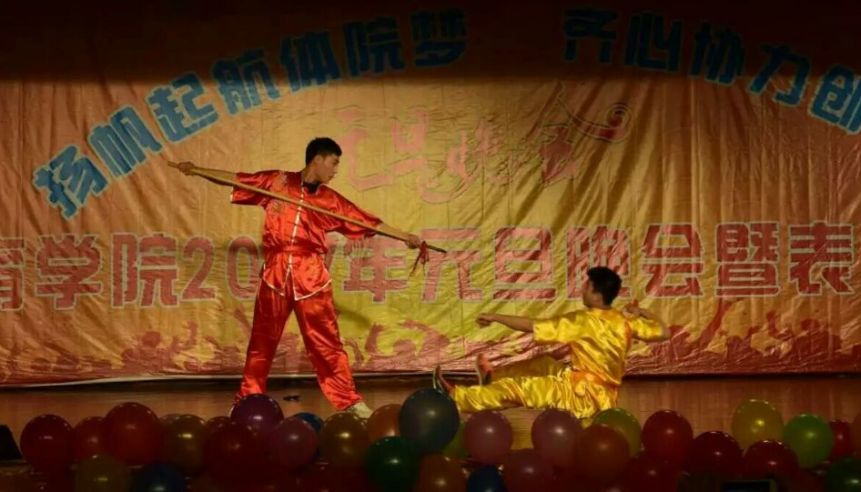 14级社体班的学长学姐们以舞蹈《拜新年》点燃了全场的氛围,给晚会增添喜庆的氛围。接着,14体教和16社体共同表演的《武舞》让大家眼前一亮,全场掌声不断,尖叫呐喊的声音此起彼伏。欣赏完武术和舞蹈,台上的表演者们又将台风变得幽默风趣。小品、双簧让观众们笑语连连,体院的节目充满了体院的特色,14体教的学长表演的篮球秀让观众心生羡慕,随后的跆拳道表演让晚会迎来了高潮。虎虎生风的表演让大家直呼精彩,台下气氛十分活跃。有欢乐,自然也有煽情。15体教的学长们表演的情景剧仿佛把我们带回到了高中的奋斗时代,情到浓时不由地为之落泪。最后,16社体的小品和14体教的舞蹈为这次晚会的节目画上一个圆满的句点。