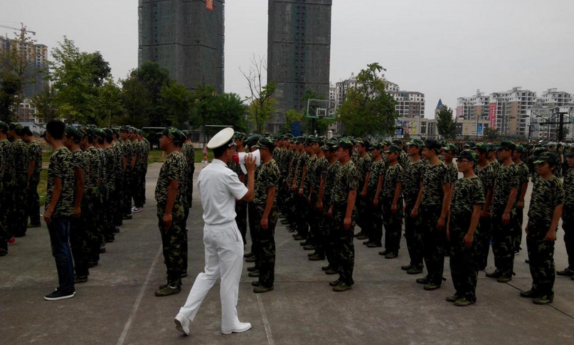 军训是大一新生进入大学的第一堂课,汗水记录着他们为期半月的枯燥单调训练生活。烈日下的体育生穿着绿色的军训服挺立身姿,摆动手臂,踢着正步,目光迥然有神,凝视前方,整个排都透露着军旅的气息。教官同他们一起站在烈日下,用洪亮的声音指导他们的动作,严厉的呵斥,是培养他们严格的自我要求的保证。