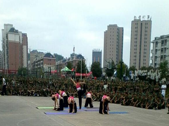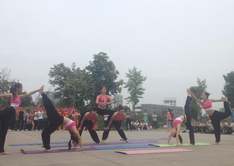瑜伽专选班学姐们的表演让军训新生的眼前大亮,柔韧的身体,彼此的配合,慢中有细,和着音乐身体自然舒展,各种高难度的动作熟练地运用于表演中,新生为之大振,也充分展示了体院各专选班的特色和所带给他们不一样的感召力。