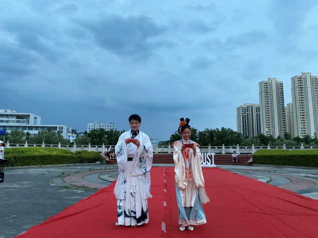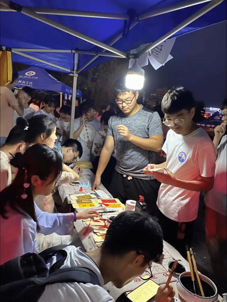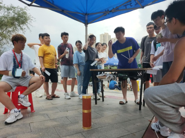 下午6点30分,参加此次游园会活动的同学们就早早来到揽月广场,迫切地等待,晚上7点游园正式拉开帷幕,悠扬婉转的丝竹表演,中国特色元素的震撼街舞,带着火花的双节棍,展示风雅一身的汉服,文化活动氛围节节攀升,同学们排着队、拿着游园卡,穿梭于各个精彩绝伦的文化游戏展台,为此次活动准备的大批礼物很快就兑换一空,可是同学们的热情仍然不减。本次活动为充分体现汉文化特色,将猜字谜、飞花令、写扇面、投壶等传统游戏和现代趣味游戏、知识竞答、现场抽奖等精彩环节相结合不仅增强了游客的参与感,也使整个游玩体验过程乐趣无穷。