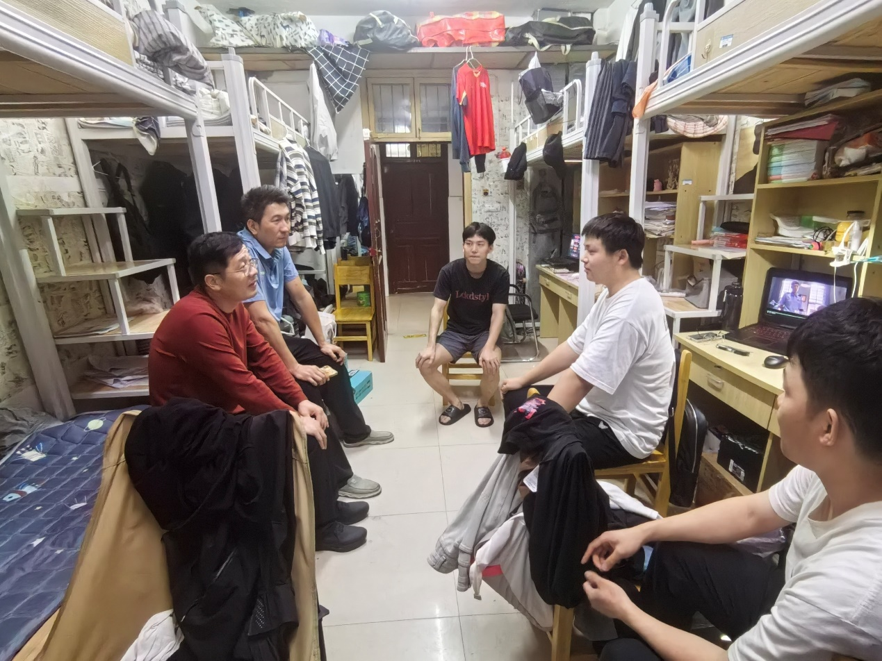 当晚19时,张欢书记、肖军书记一行来到西区6栋学生公寓,与即将毕业的学生们促膝长谈。"工作找得怎么样?""有没有遇到什么困难?"在210寝室,张欢亲切询问每位同学的就业进展。当了解到同学因简历不够突出而屡屡碰壁时,立即安排随行的就业指导老师现场指导修改,并叮嘱:"要突出你们的专业特色,把社会体育指导员资格证、实习经历等重点标注出来。"