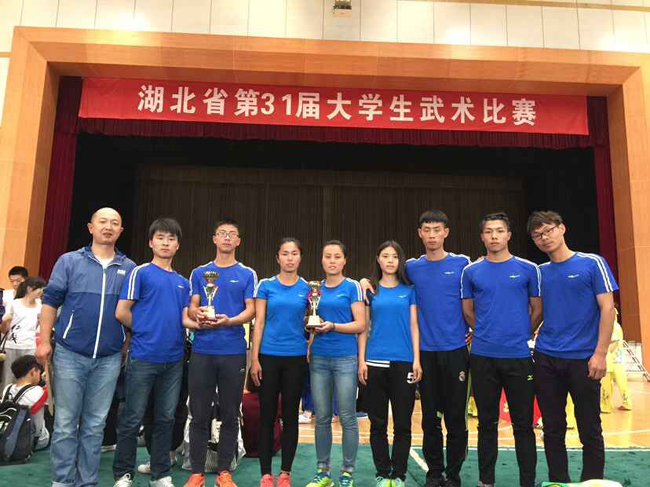 5月14日-15日,湖北省第31届大学生武术比赛在湖北中医药大学举行,来自全省42所高校代表队500余名武术精英同台竞技、激烈角逐。我校组织学生参加了此次武术比赛,并且斩获佳绩,王华荣获男子丁组传统拳三第一名、吴瑞霞荣获女子丁组传统拳二第一名,左旺、覃建鑫、张亚、张得建等队员也都表现不俗,获一个第二四个第三,丁组团体总分第五名,王华与张得建获优秀运动员称号。