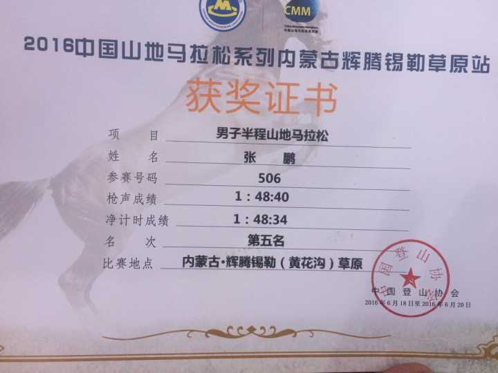 2016年6月,国家体育总局登山运动管理中心联合中国登山协会在内蒙古自治区辉腾锡勒草原举办了“2016中国山地马拉松系列赛”。我院户外运动队积极筹备并选派户外运动专业教师张军带队,率队员张鹏、胡月、柯曾银、张贺威参赛。经教练员精心指导、科学安排和参赛队员的刻苦训练、顽强拼搏,最终队员张鹏取得了男子半程马拉松赛第五名,另外三名队员也各自完赛并取得优异成绩。