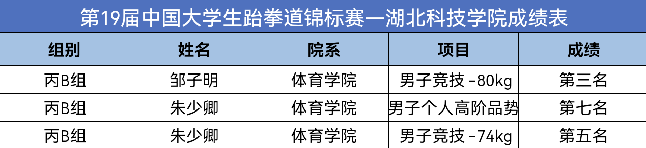 虽然最终未能站上最高领奖台,但湖北科技学院代表队在此次强手如林的盛会中依然拼尽全力,取得了符合当前队伍实力、力所能及的成绩,为学校赢得了宝贵的荣誉积分。朱少卿、邹子明等同学还获得了2025年中国大学生跆拳道锦标赛总决赛的资格。更重要的是,队员们在高强度的顶级对抗中积累了极其宝贵的实战经验。每一次与顶尖高手的交锋,都是对技术、战术和心理承受力的淬炼。他们亲身体验了全国最高水平赛事的强度与节奏,清晰地认识到自身的优势与需要提升的空间。