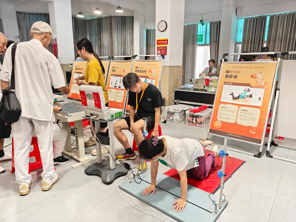 测试过程中,我院师生凭借扎实的专业知识和严谨的工作态度,在11个测试点(涵盖行政村、社区、博物馆、体育馆、老年中心、小学、大型商超等)高效开展工作。无论是对成年人身体形态、机能、素质的全面检测,还是对老年人各项指标的细致测定,都做到了规范操作、数据详实,最终为分析咸宁居民体质状况提供了高质量的第一手资料。团队成员在炎炎夏日中不辞辛劳,奔波于各个测试点,耐心解答居民疑问,每天5点多起床,工作至晚上9点,碰到转场的日子,排好设备已经是23点啦,尽管汗水浸透衣衫,但看到居民们满意的笑容和逐渐提升的健康意识,大家心中充满了成就感和使命感。