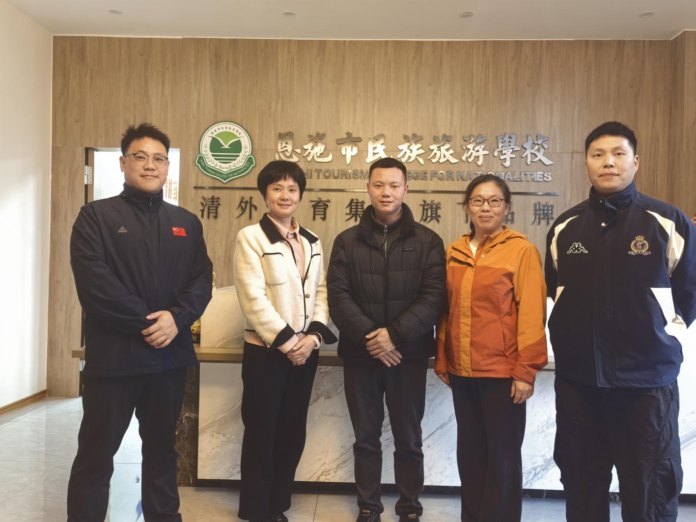在恩施市民族旅游学校,该校负责人热情接待了走访小组,介绍了办学定位、发展规划及体育教学等方面的优势成果。作为当地应急救护培训研学基地,该校在体育与旅游、应急培训融合领域成效突出,亟需专业体育人才补充教学实训队伍。
