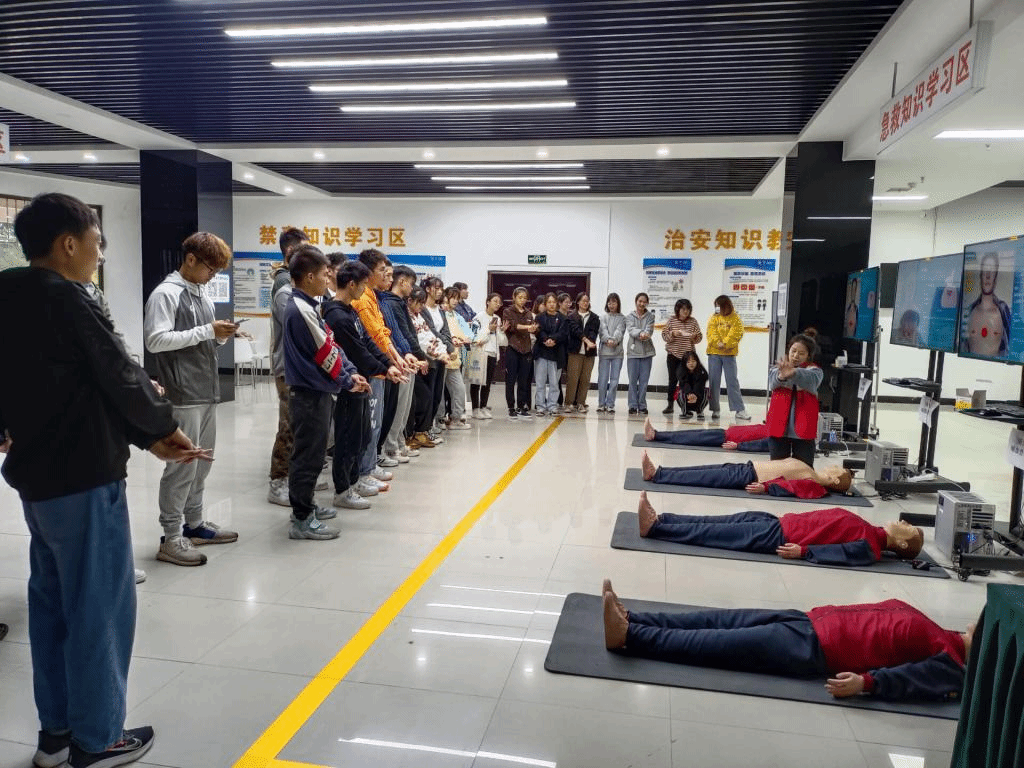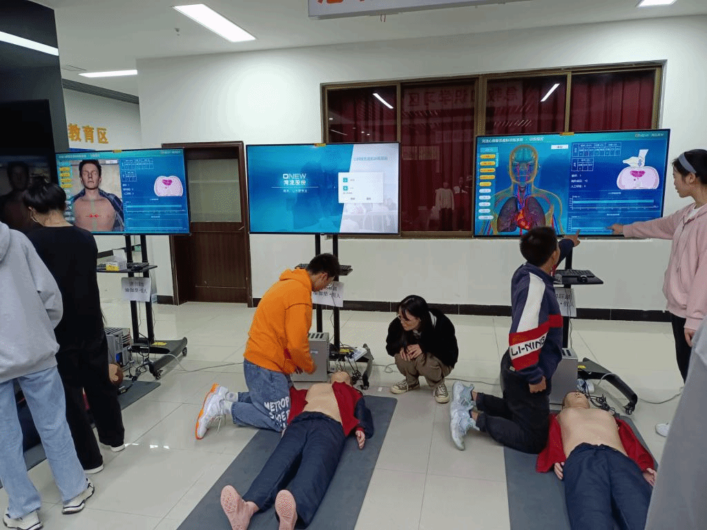 游戏过后,大家一同前往安全教育中心进行本次培训的核心环节——心肺复苏教学。教学由会长马若一学姐以及技术部部长陈姝霖学姐为大家示范。在该过程中,大家都认认真真听讲,面对提问也从容回答,对不清楚的地方还细心地做了笔记。示范教学过后,大家都跃跃欲试,自告奋勇地上前展示自己的学习成果,表现的非常积极。在新同学操作的时候,老队员也会在旁边纠错改正,确保心肺复苏知识的有效学习。