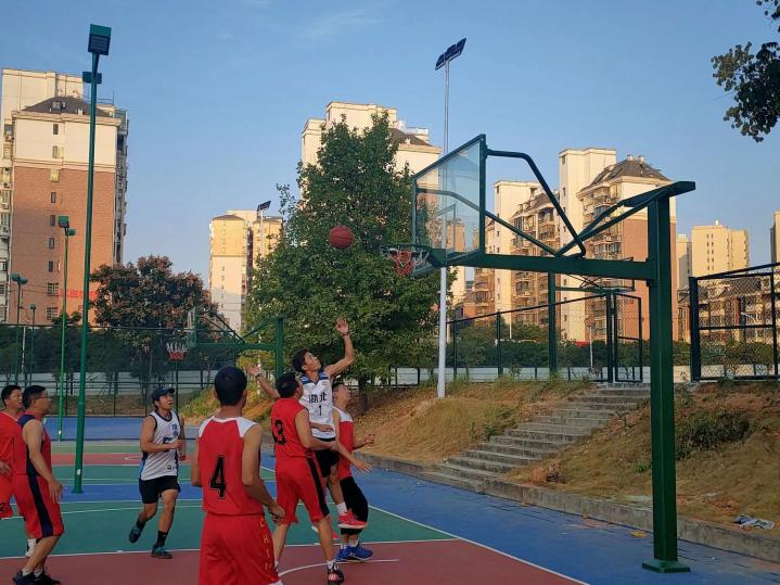 随着裁判的一声哨响,比赛正式开始。学生篮球队通过积极的拼抢,打防守反击,并利用个人能力突破,不断取分。教工篮球队则稳扎稳打,利用娴熟的球技、默契的配合和灵活的篮下技巧,在比分上取得领先。比赛过程精彩不断,赢得了场边观众的阵阵掌声与欢呼。最终,教师队以40:38嬴得了比赛的胜利。