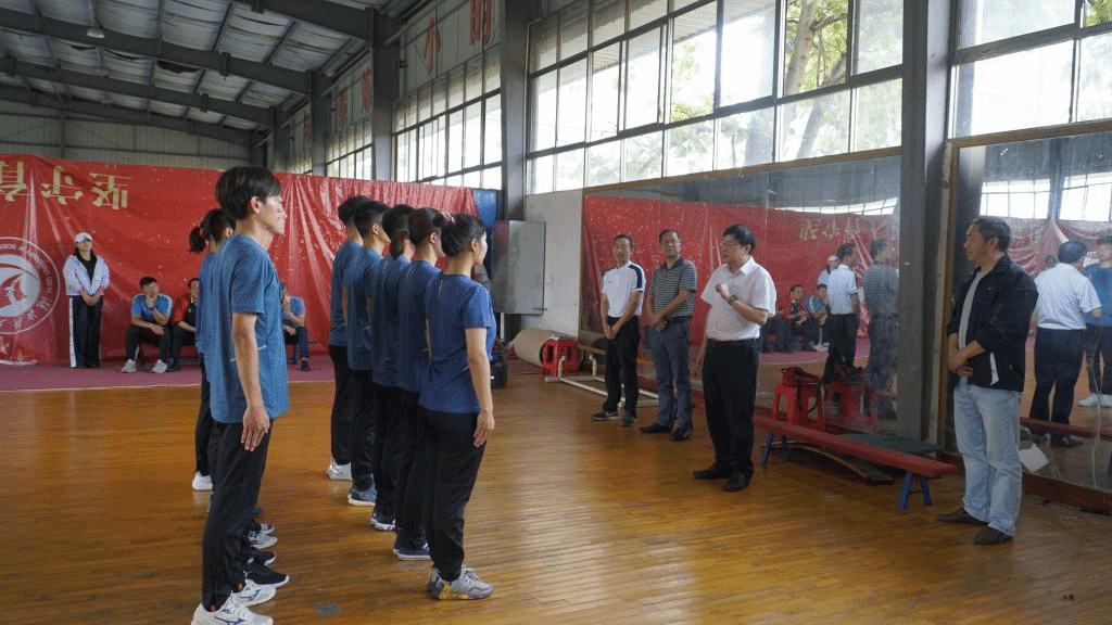 在训练馆,吴基良一行认真观看了广播体操的训练展示,并与运动员、教练员进行亲切交谈,详细询问运动员的训练情况及生活情况,并对教练员和运动员的辛勤付出以及刻苦训练的精神给予了充分肯定,并勉励参赛师生积极调整心态,进一步提高训练效果,同时也要注意劳逸结合,展示湖科学子的青春风采,力争取得优异成绩。