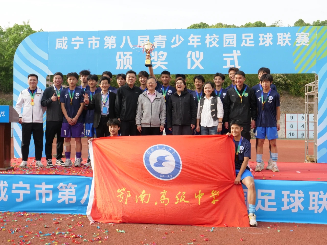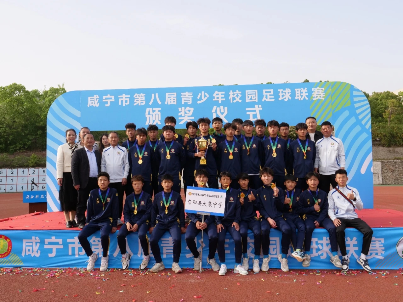 激情赛场创佳绩,快乐足球展风采。2025年4月12日下午,为期五天的咸宁市第八届青少年校园足球联赛在我校西区运动场圆满落幕。崇阳县大集中学、湖北鄂南高级中学分别夺得初中组和高中组冠军。