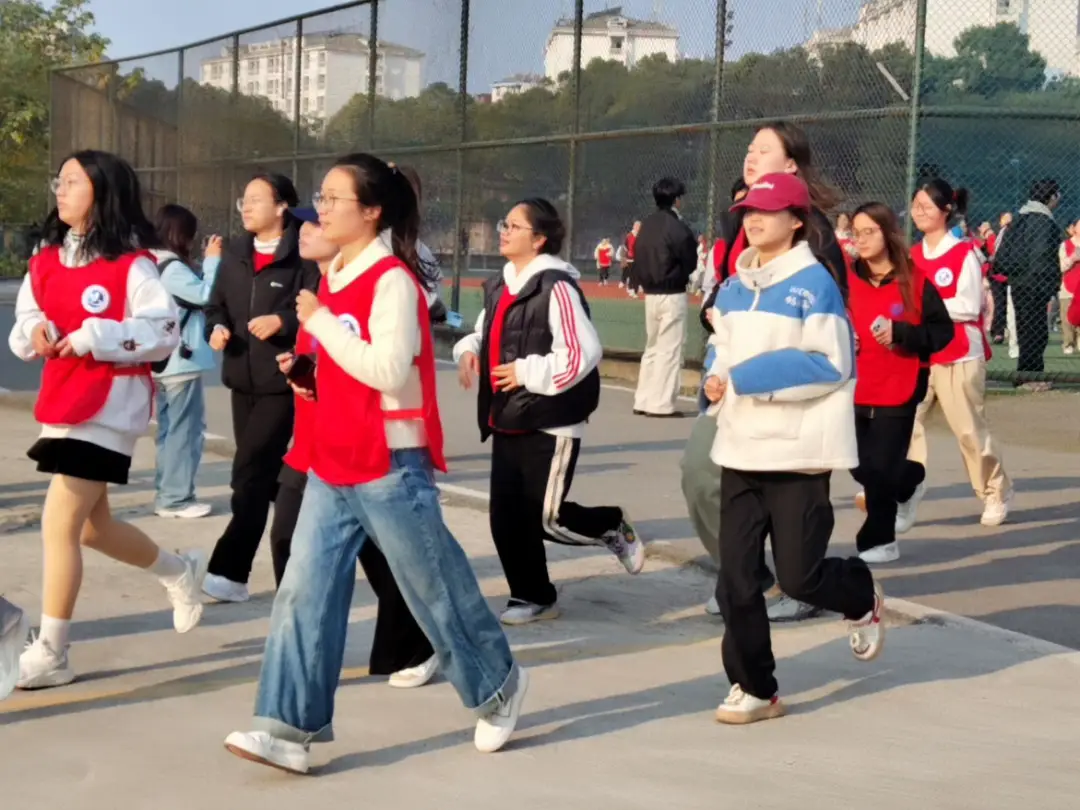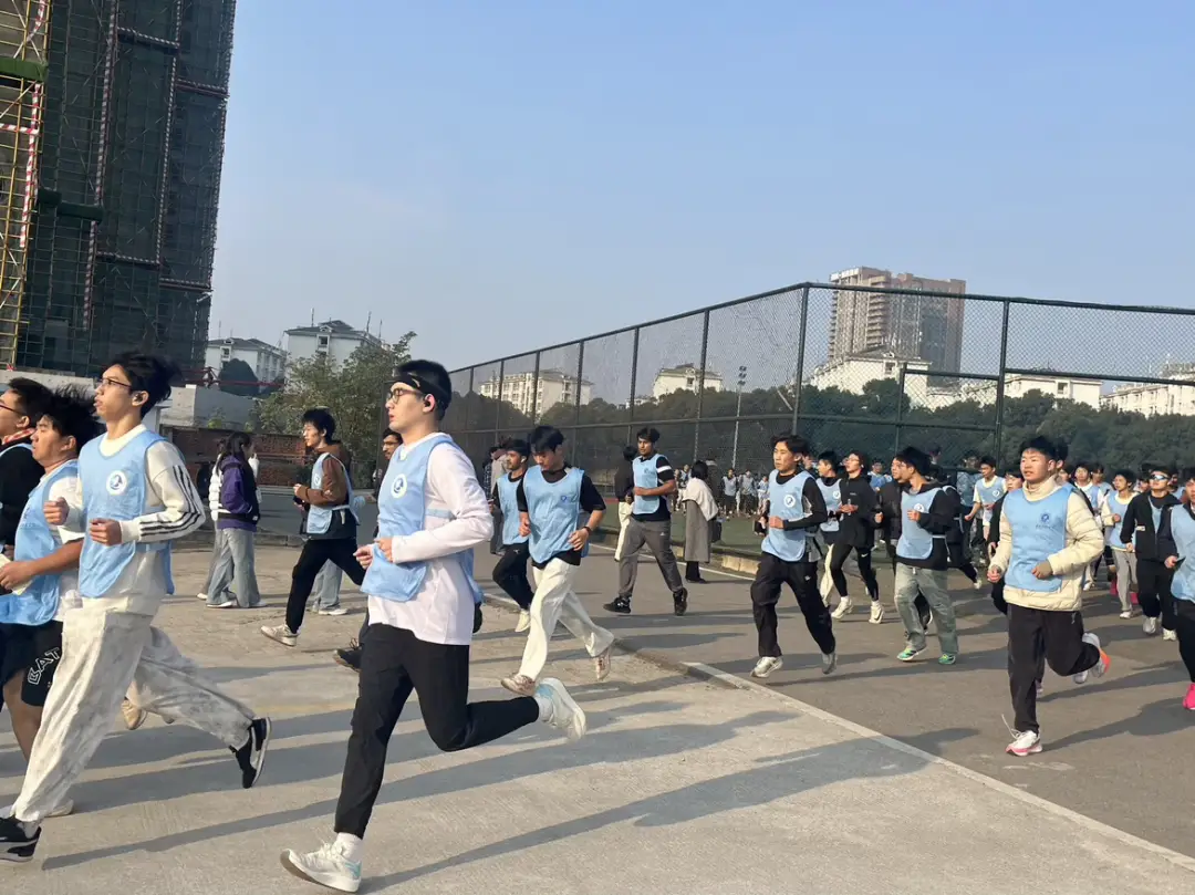 赛道中途的较量更显动人。公开组学子集体进入体能瓶颈期,不少人脚步放缓、呼吸急促,身旁同伴纷纷放慢节奏,或轻拍肩膀鼓劲,或并肩领跑,“跟着节奏,想想先辈们的坚持”的轻声鼓励在赛道间传递;教职工队伍中虽有部分人落在后方,却始终保持稳定步伐向前迈进,赛道两侧的志愿者们始终站立助威,掌声与“加油”声此起彼伏,将温暖与力量传递给每一位选手。冲刺线前,选手们不约而同加快步伐,衣衫虽被汗水浸湿,却都挺直腰背向着终点迈进,选手们的脚步声交织成沸腾的乐章。