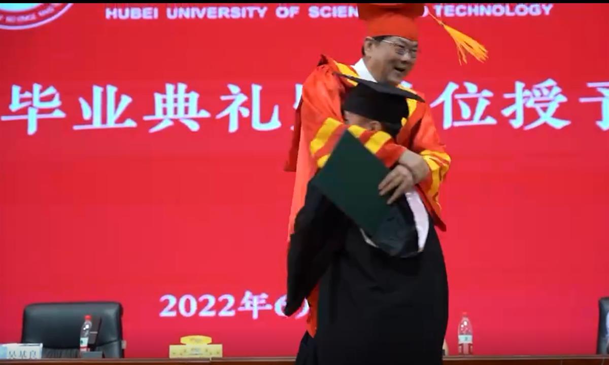湖北日报讯(记者周鹏、通讯员田丽)6月15日上午,湖北科技学院举行2022届毕业典礼暨学位授予仪式,5098名毕业生从这里迈向新的征程。现场,一名学生激动地抱起校长转圈,场下掌声雷动。
