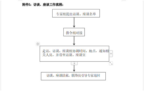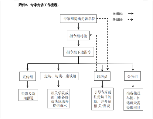 主要工作任务:制定本组所涉及工作的详细方案。组织落实专家组对领导干部、教师、学生的访谈、座谈、问卷调查及学生宿舍、餐厅等的走访,并与学校会务组沟通,安排好访谈、座谈和走访场地;根据专家预先确定的人员名单,通知相关人员按时前往指定场所参加访谈或座谈。