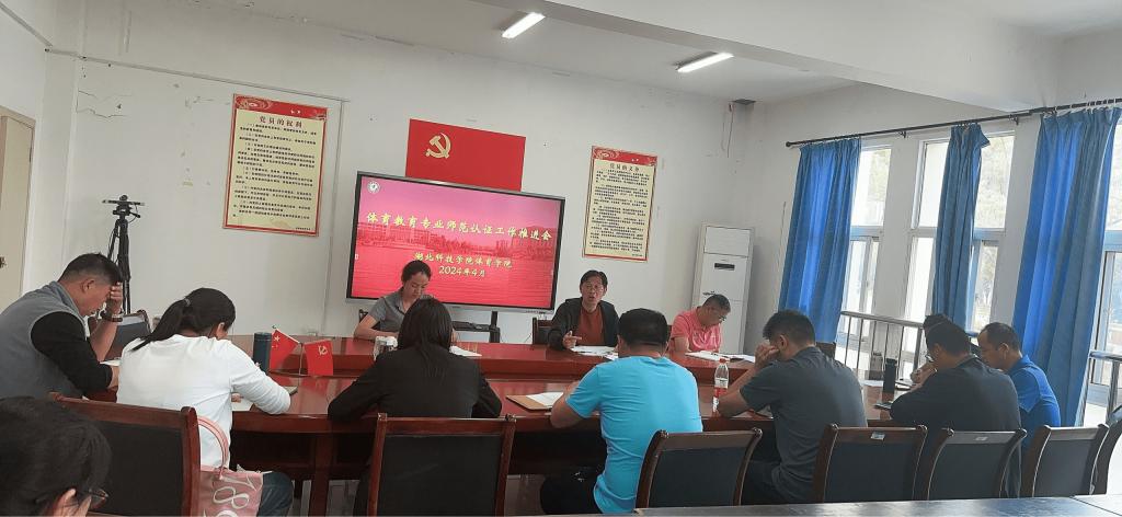 (通讯员:邱承柏 审稿:朱小云)4月25日下午14:30,BBIN宝盈集团官网首页在二楼会议室召开体育教育专业师范认证工作推进会,院领导和认证工作小组全体成员参加会议,会议由朱小云副院长主持。