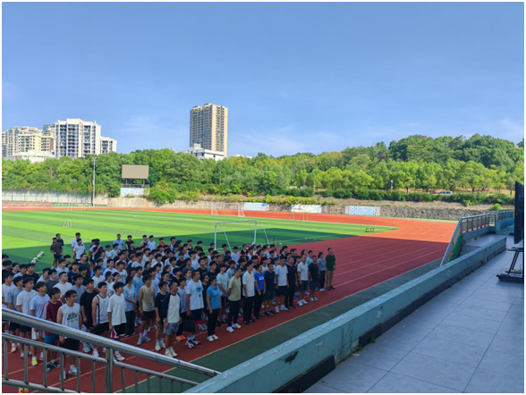 上午8:30,师生们提前抵达各会场,怀着崇敬之心等待大会开始。值得一提的是,当开幕式的号令响起,田径场上的师生自发地向主席台聚集,整齐列队,高唱国歌,通过大屏幕观看大会直播。激昂的国歌声、庄严的阅兵仪式,让现场师生深受震撼,爱国情怀油然而生。