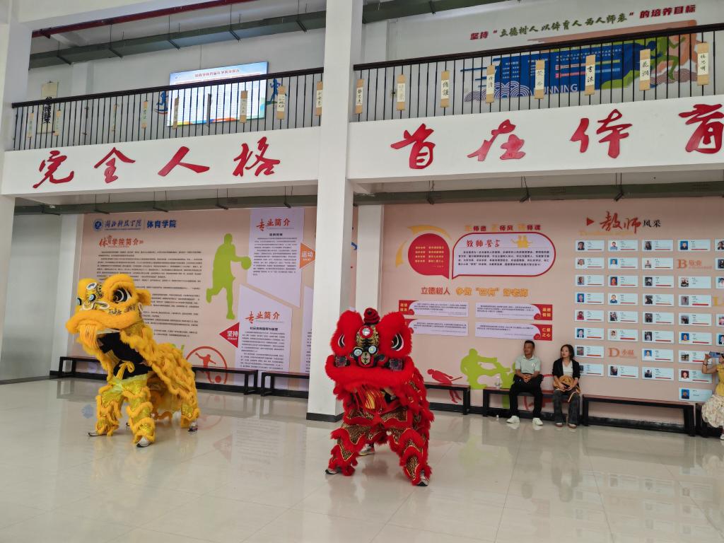秋日的咸宁丹桂飘香,校园内洋溢着热烈而温馨的氛围。座谈会伊始,一场铿锵有力、活力四射的舞狮表演拉开了序幕,以极具传统文化韵味的方式热烈欢迎新生家长的到来。随后,家长们在师生引导下参观了学院荣誉室和运动与健康实训中心,近距离感受BBIN宝盈集团官网首页深厚的文化底蕴、辉煌的竞赛成果以及先进的教学设施,对学院的办学实力与育人环境有了直观而深刻的认识。