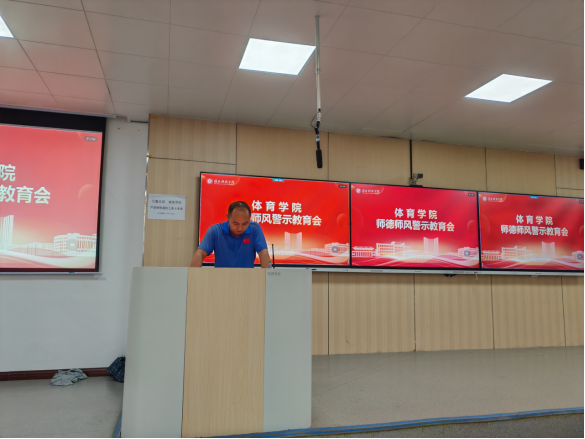会上,教学办主任邱承柏老师传达学习了学校2025年师德师风建设活动月方案以及《教育部关于高校教师师德失范行为处理的指导意见》 。为增强教育效果,强化警示作用,会上结合近年来高等教育领域出现的师德失范典型案例进行了深入剖析和警示教育。这些触目惊心的案例涉及学术不端、师生关系异化、不当言论、违规兼职等多个方面,为全体教师敲响了警钟。通过“以案说法、以案明纪”,引导教师们深刻反思、引以为戒,做到心有所畏、言有所戒、行有所止,时刻自省、自律,坚守育人初心。
